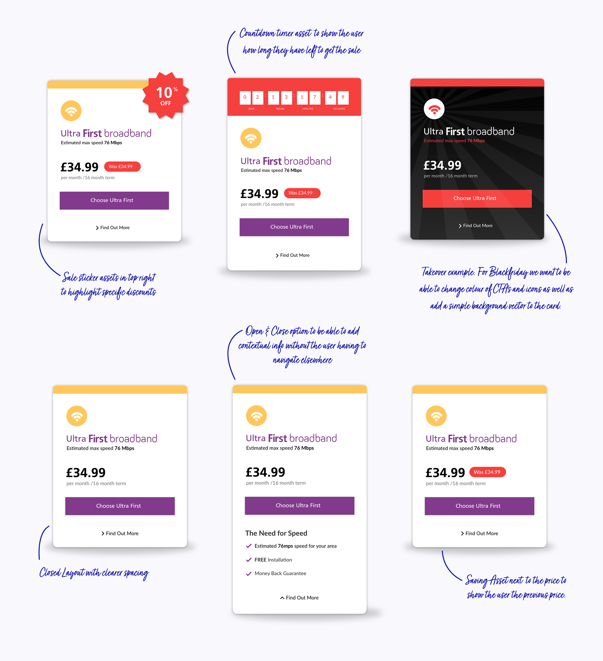 The beauty was in the flexibility, some campaigns needed just a subtle highlight, while others warranted a complete plan takeover. I established clear usage guidelines for each asset, defining when elements should work together and when they should stand alone. This ensured every promotional experience felt intentional and clean, maintaining user focus regardless of the campaign intensity.