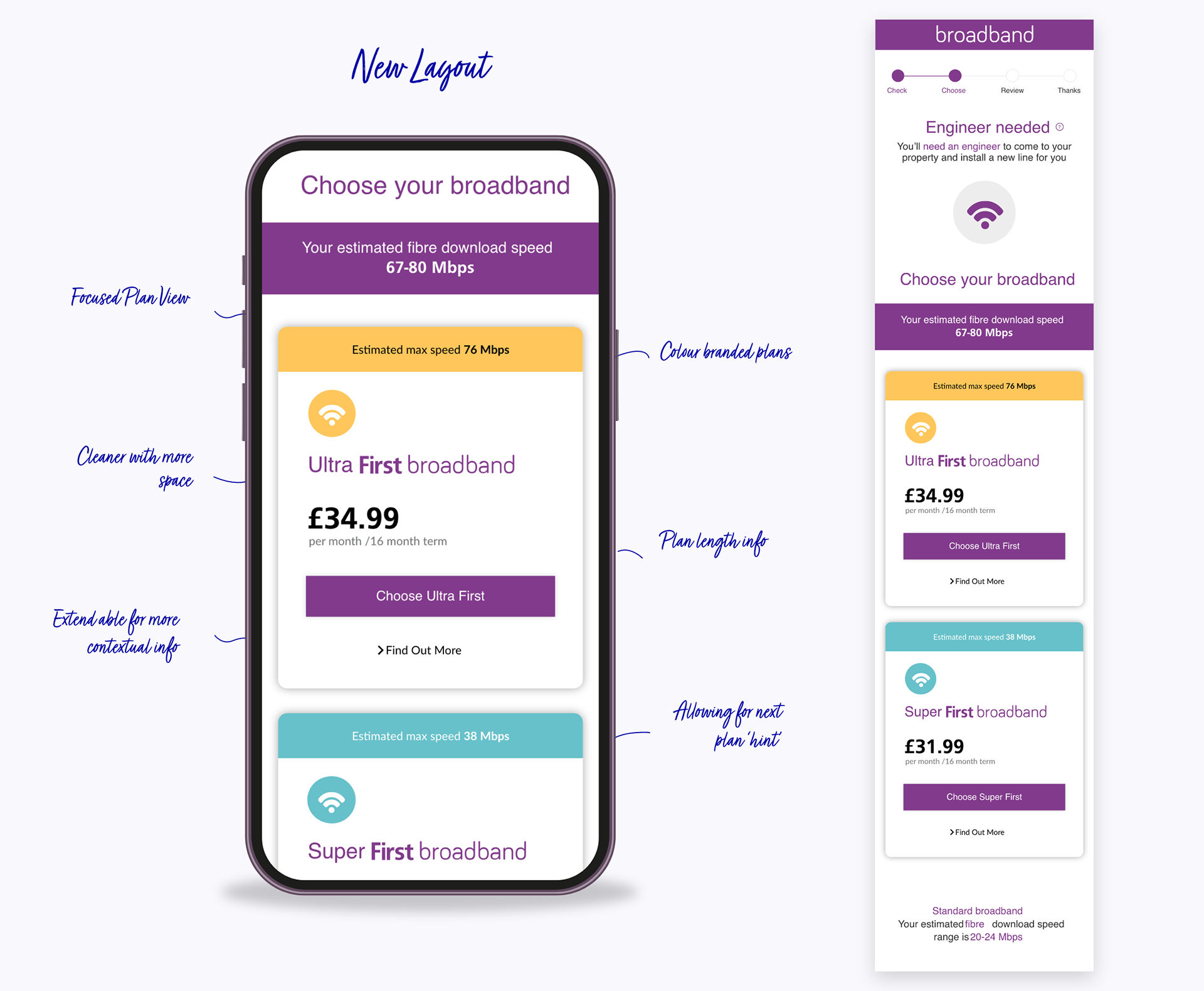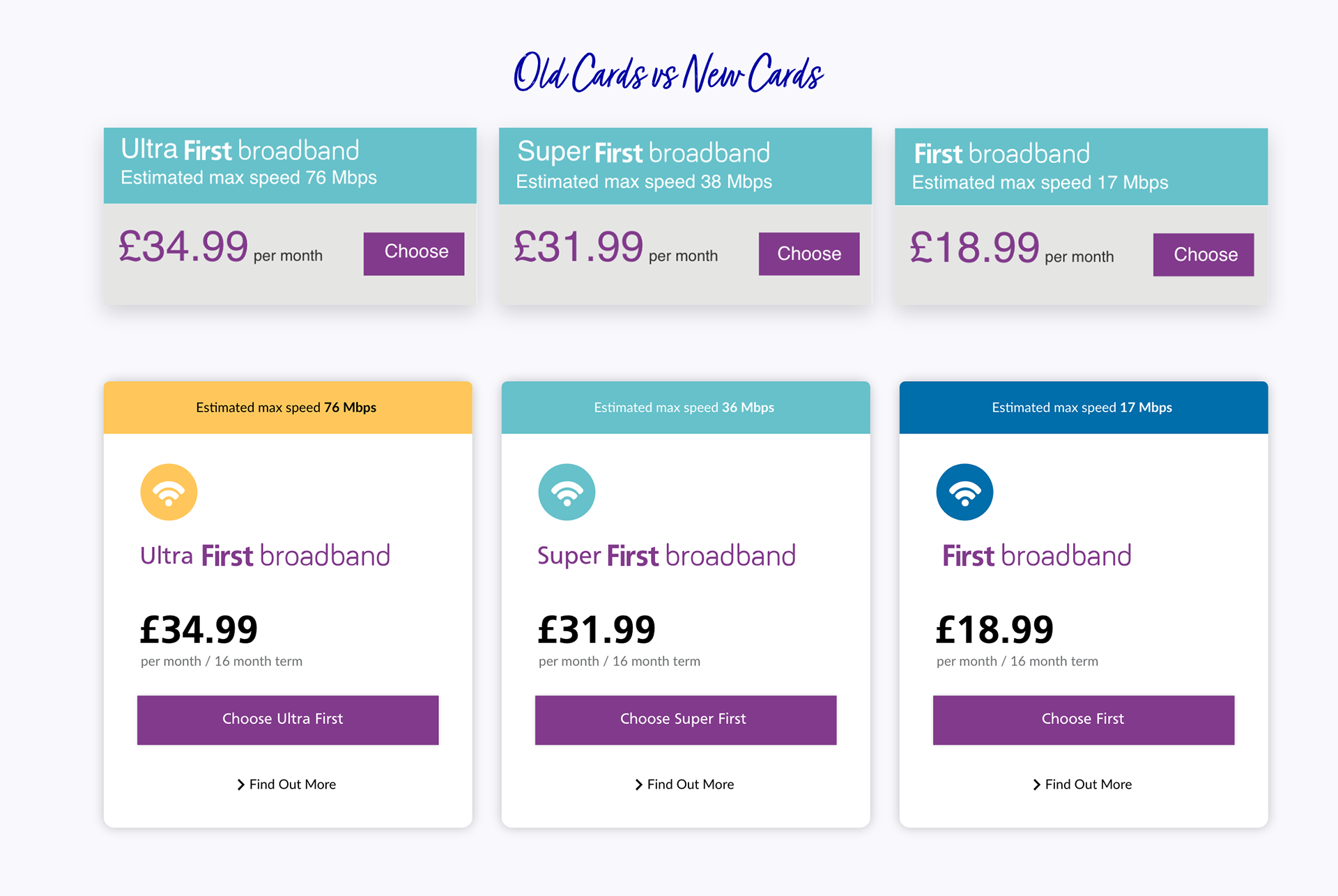 The Challenge: rescue First Utility's telco onboarding flow. Users were abandoning in droves, confused by plan options, unable to find promotional offers, and frustrated by a clunky booking system that forced them to wait six-hour windows for installation.