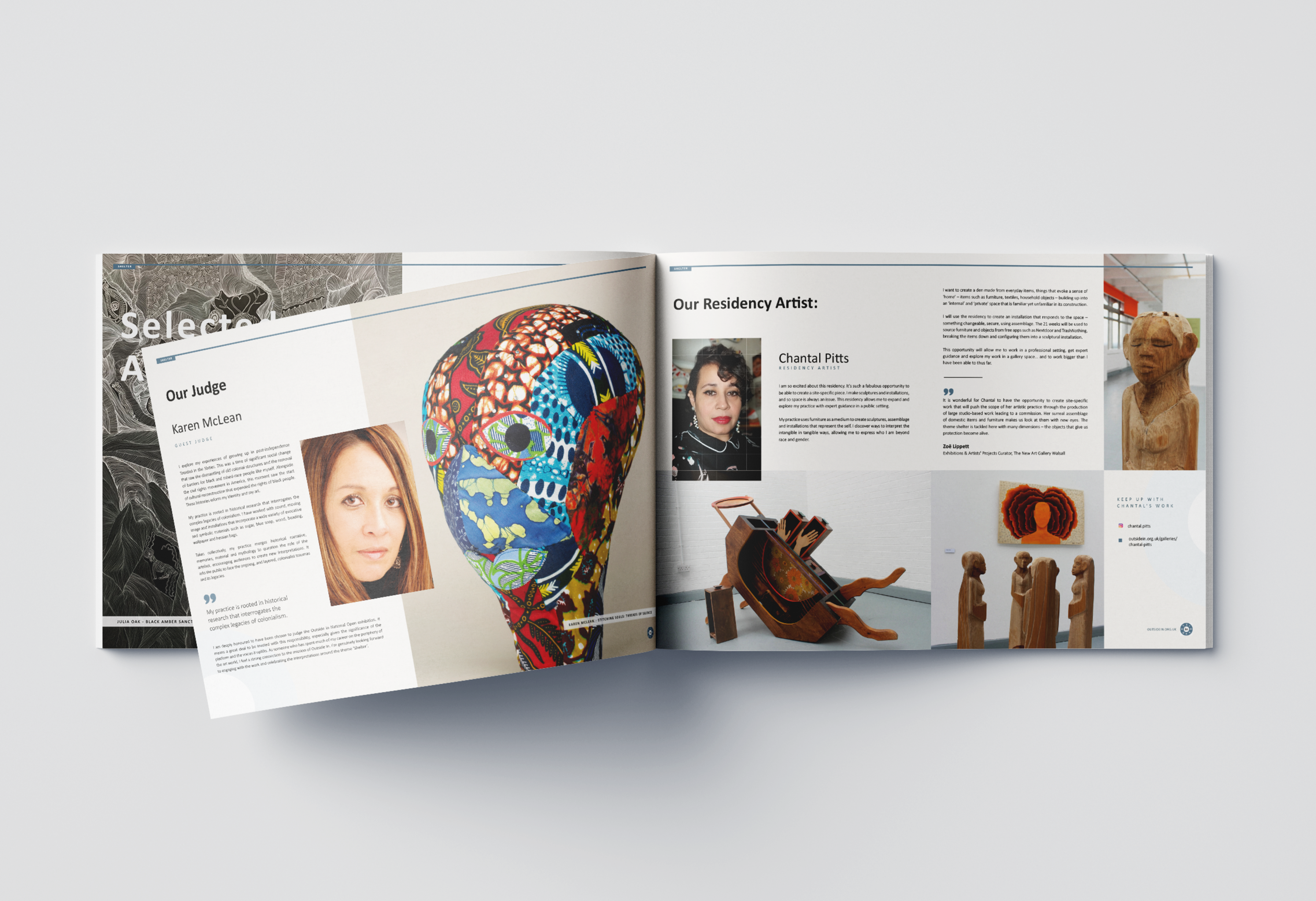 My role was to create the exhibition brochure — a piece that had to carry a lot of weight. It needed to introduce the mission, the supporters, the selectors and judges, and most importantly, celebrate each of the 80 artists. I knew immediately that this couldn’t just be an informational booklet. It had to feel like part of the exhibition itself: a space where the artists’ work could live and be experienced.