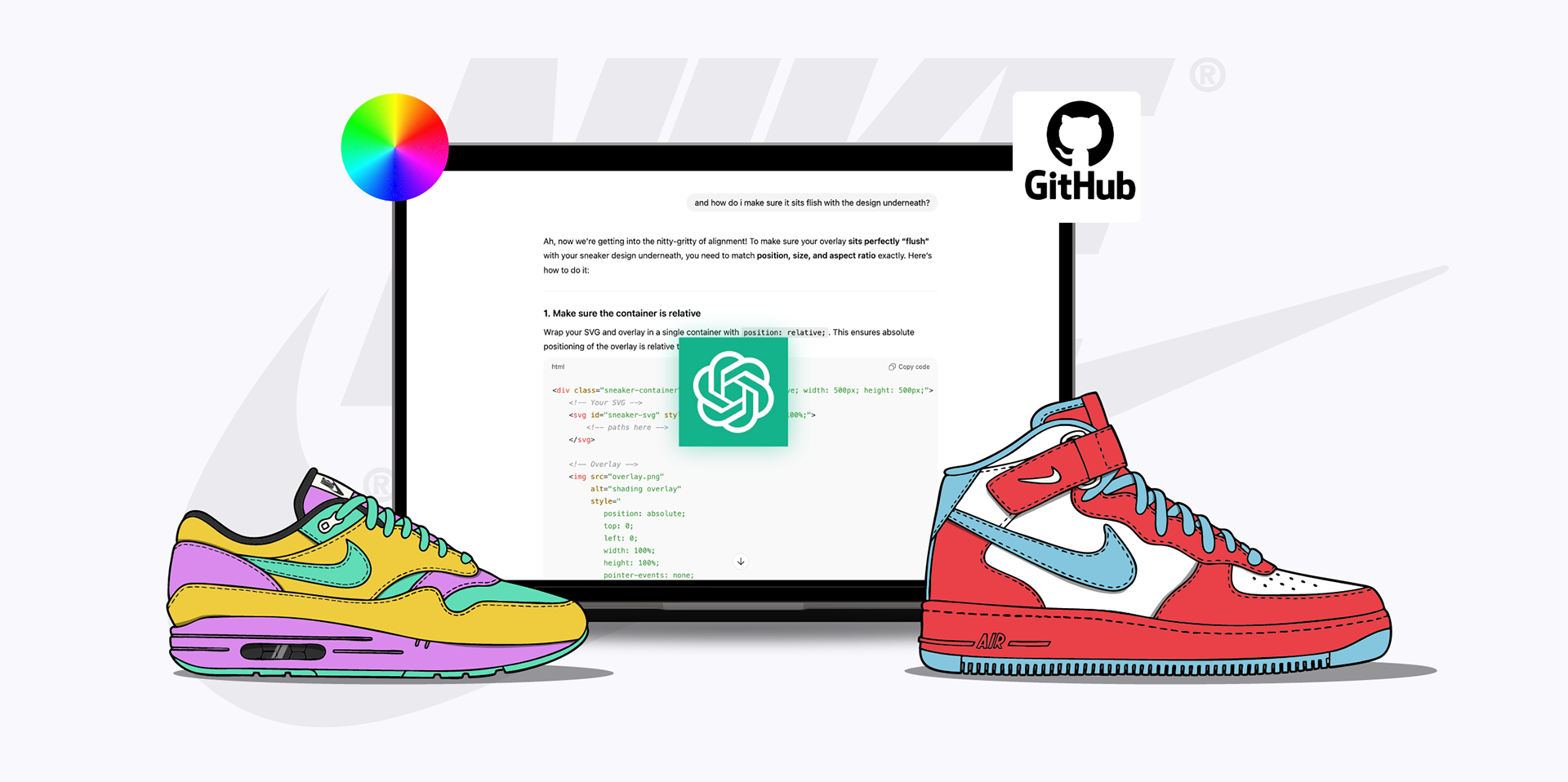 The project began with vector sneaker designs I had made during a 'Vector a Day' Instagram challenge a few years back and how I could reimagine them with AI to unlock a new colourway app. While the design process came naturally, the real challenge and learning opportunity was making the experience interactive and functional with AI.
