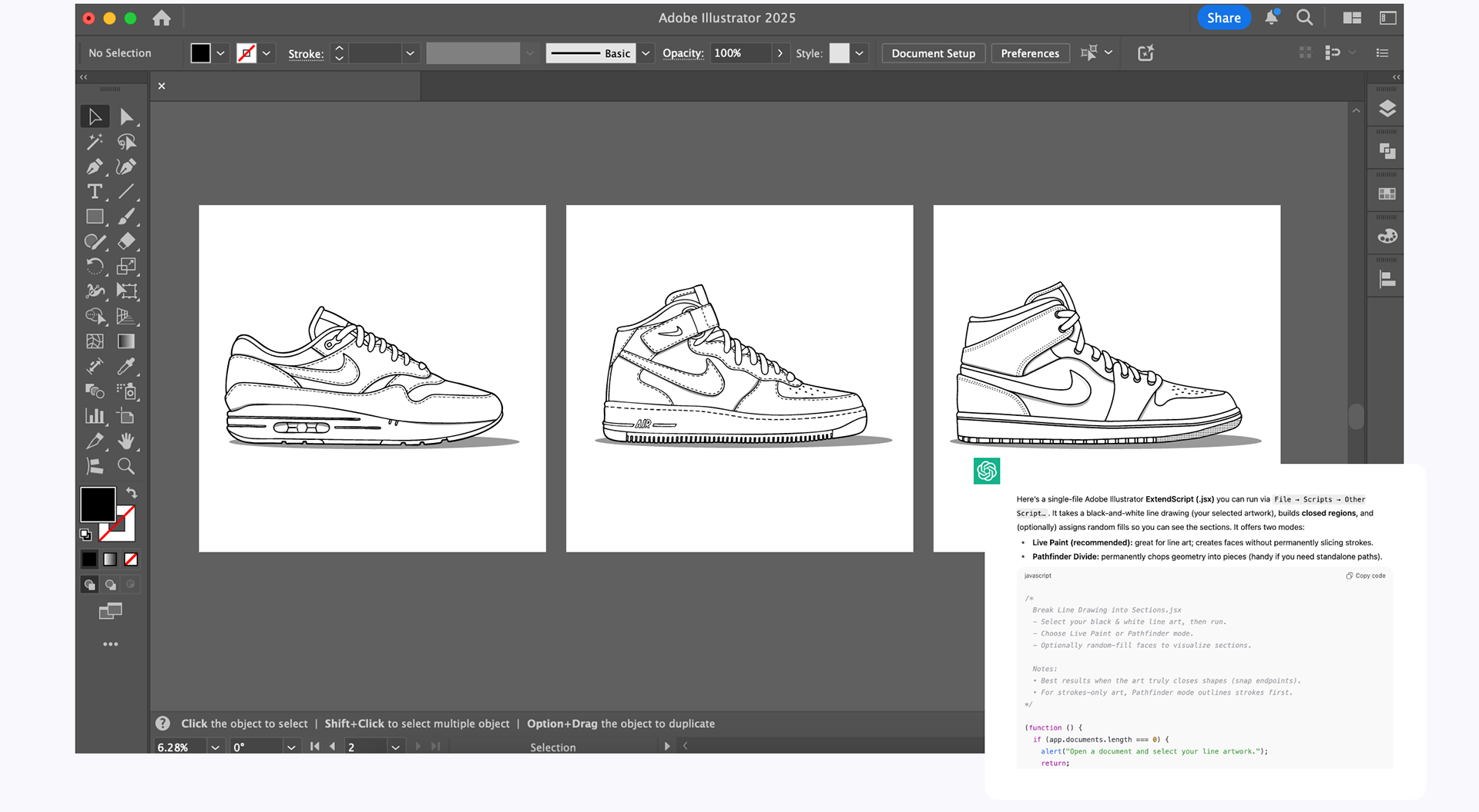 My first attempt with ChatGPT was converting vectors into interactive SVG assets. Initial results looked promising—until they didn't. Sections weren't cut correctly, interactions broke, and after countless prompts, I realised AI couldn't diagnose its own output.