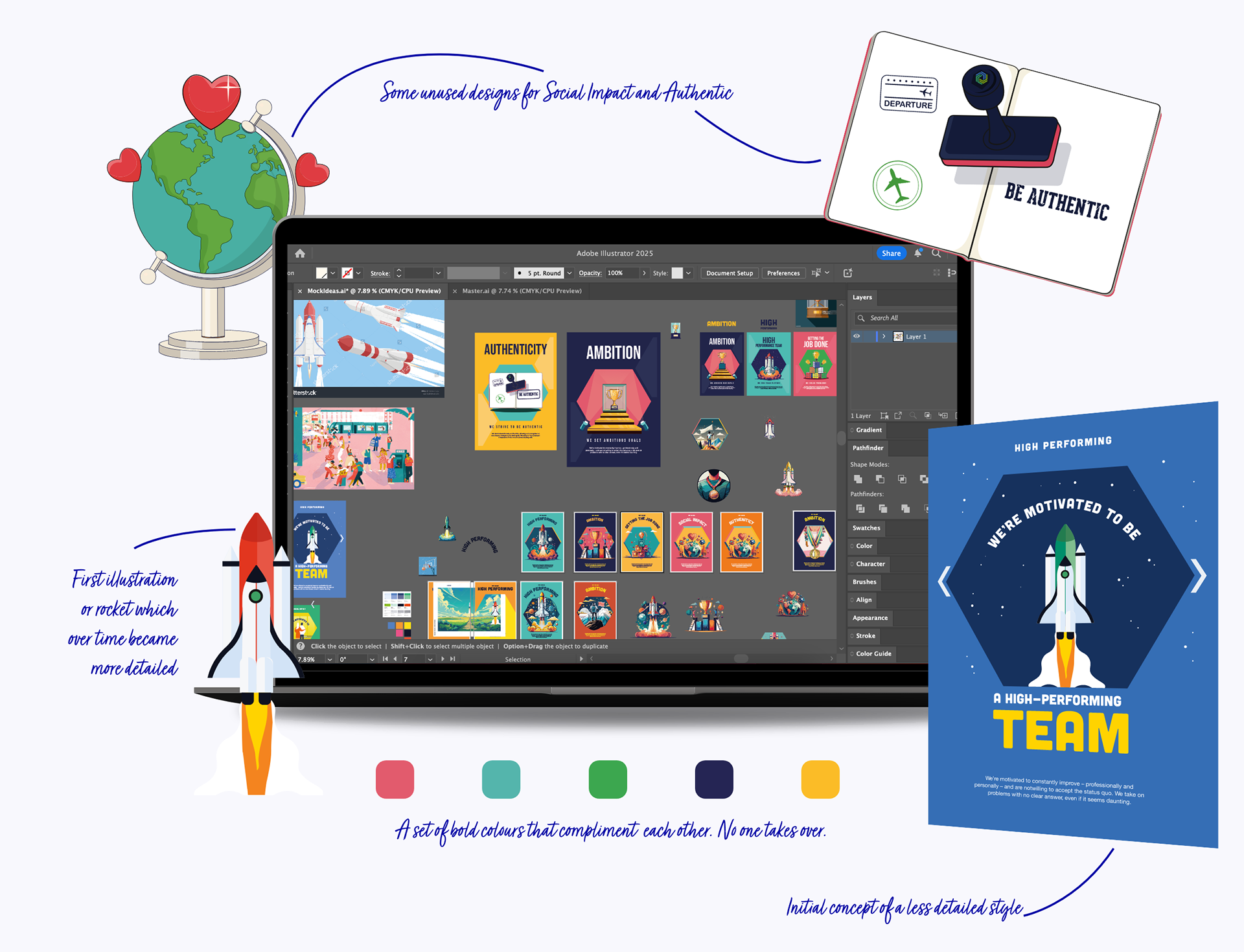 Thalamos approached me to create a series of illustrations promoting their company values, this wasn't going to be your typical project. They handed me something rare in client work: complete creative freedom. No colour restrictions, no style mandates, no safety nets.